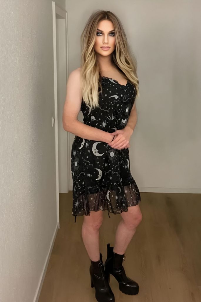 Can you just imagine having a beautiful xdresser like this in your life? She has a sublime sexiness that is utterly irresistible, with a face that screams I’m hot and sexy, a body just made to be worshipped, and stunningly beautiful long legs. She also has a girly cock that would have any TGirl lover drooling in lust!